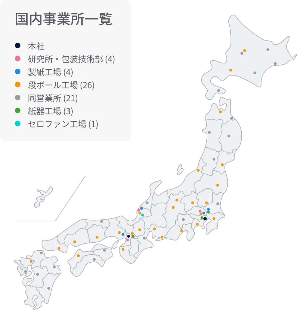 レンゴーの直営工場は、日本全国をくまなくカバーし、多様なグループ企業を有するレンゴー・ネットワークの中核として、