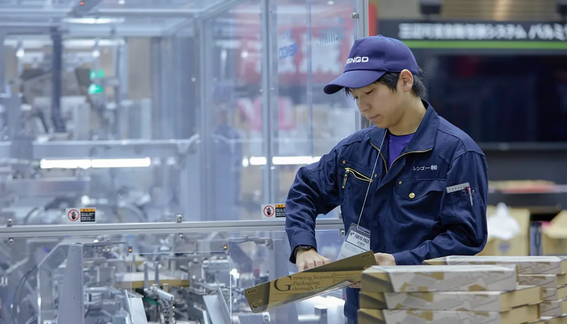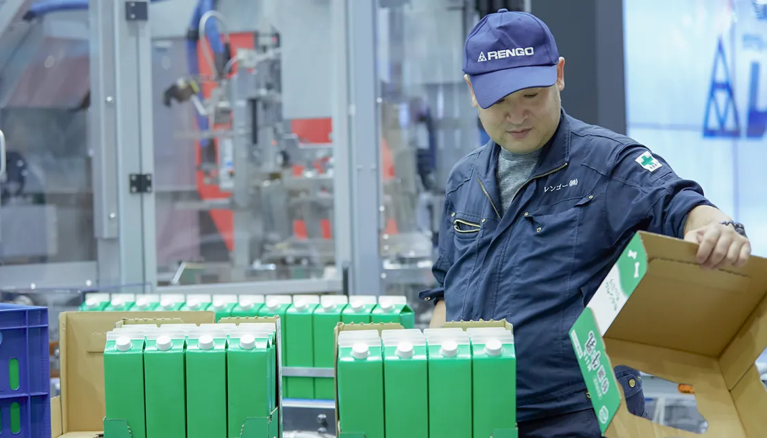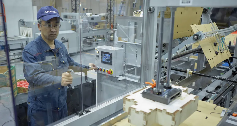Rengo supports automation and labor-saving of packaging lines using technology and know-how developed over many years as a comprehensive packaging producer. We pursue the best match between packaging materials and machinery, fitting our customers’ needs with our rich lineup including original packaging machinery developed by us. We propose optimal systems taking into consideration stability, running cost, and even layouts according to the installation space.