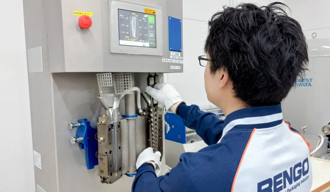 with low environmental impactRengo has developed manufacturing technologies incorporating new technologies and materials such as water-based flexo printing technology, inks made from biomass, and the use of film and so on.
