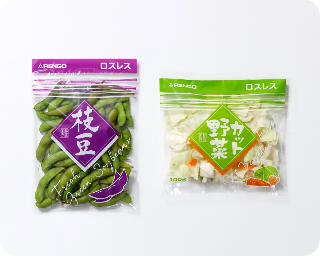 野菜などのおいしさを長く保ち食品ロスの削減につなげるための「ロスレス」や「リサイクール」など、見ただけではわかりませんが、パッケージの用途に応じてさまざまな機能性を付与しています。また、誰にでも開けやすい設計や見やすく読みやすいデザインなども積極的に取り入れ、ユニバーサルデザインにも配慮しています。