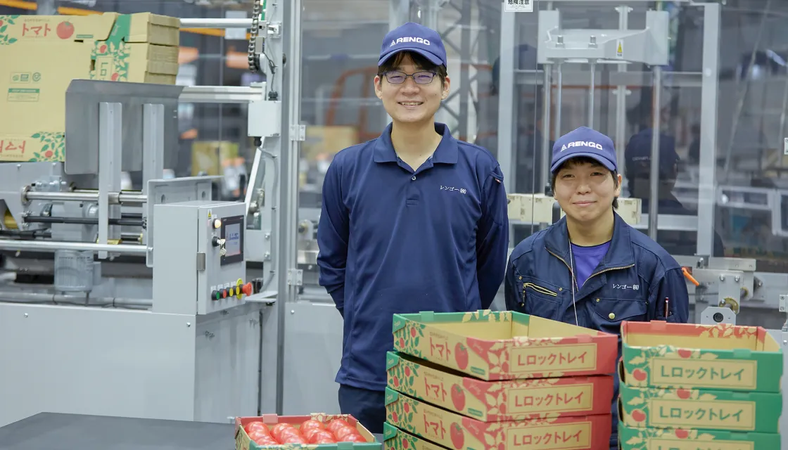 レンゴーは、総合パッケージメーカーとして長年培ってきた技術とノウハウをもとに、包装ラインの自動化・省力化をサポートしています。当社独自開発のオリジナル包装機械をはじめ豊富なラインアップで、お客さまのニーズにフィットした包装材料と包装機械のベストマッチを追求。安定性やランニングコスト、設置スペースに応じたレイアウトまで考慮した最適なシステムをご提案しています。